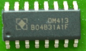 DM413是一顆具脈波寬度調制(PWM)致能的LED驅動芯片.專為LED照明,裝飾.大顯示屏等應用所設計芯片內含移位寄存器.數據鎖存.及三通道恒流驅動器.(電流值可由相對應的三個外掛電阻做調控)內建震蕩器可實現PWM功能.數據輸出端與時鐘輸出端皆可串接至下一芯片.獨特的.「輸出端極性反轉功能」可與高功率LED之應用做搭配設計,增加了設計延展性.
