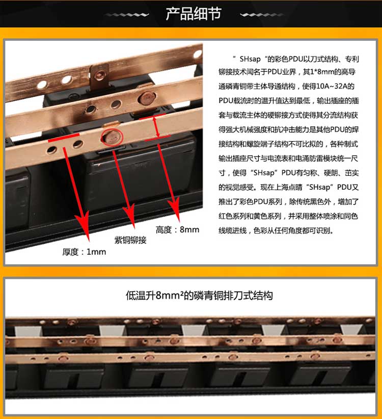 SHsap刀式銅排 8位C19大功率彩色PDU描述