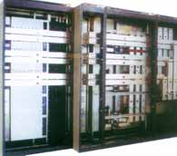 概述  動力配電中心(PC)最多可由三個饋線單元組成,每單元饋線最大電流可達1600A。柜內選用ME型抽出式萬能斷路器,組件室高度為1800 rTIN"1,每框安裝1—2個斷路器。斷路器具有工作位置,控制回路儀表,批示燈,控制按鈕安裝在搖門上,斷路器在試驗位置時搖門能關上。
