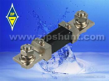 分流器主要由錳銅片和銅接頭焊接構成,在分流器兩端的接頭上有兩組接線端鈕:外邊一組為電位端鈕,供與電源線連接,內邊一組為電位端鈕,供與測量儀表連接。與分流器同時供應一對定值導線。