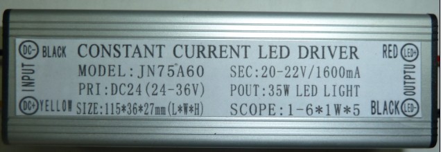 4)、可接單顆60W大功率LED,(規格:33V-35V/1800MA