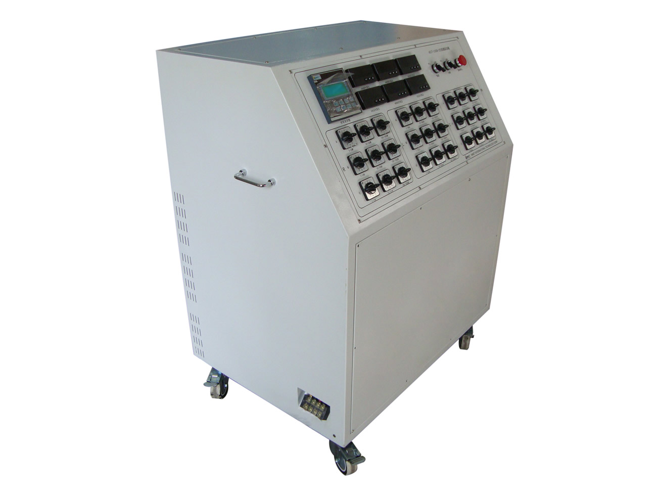 阻性負(fù)載:分相獨立控制0.01-0.09kW, 0.1-0.9 kW, 1-10 kW(A相、B相、C相分別有三只10檔旋轉(zhuǎn)組合開關(guān),共九只組合開關(guān));合計:32.97 KW;