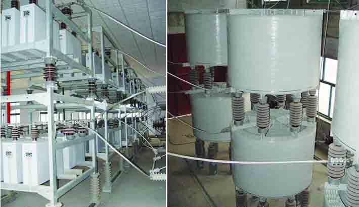1.濾波電容器組由多臺電容器單元組成,單臺濾波電容器采用單相結構以便分相調諧。濾波電容器采用全膜復合介質,具有體積小,損耗小,運行溫度低等特點。