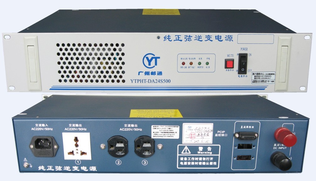 廣州郵通系列逆變電源(也叫逆變器)采用美國(guó)INTEL公司16位專(zhuān)用微處理芯片控制,主電路采用進(jìn)口功率模塊,具有可靠性高、保護(hù)功能全、波形失真小、價(jià)格低廉等優(yōu)點(diǎn)?梢园12V/24V/48V/110V/220V直流電源轉(zhuǎn)換為220V、50Hz穩(wěn)壓、穩(wěn)頻、噪聲小純凈正弦波交流電源。