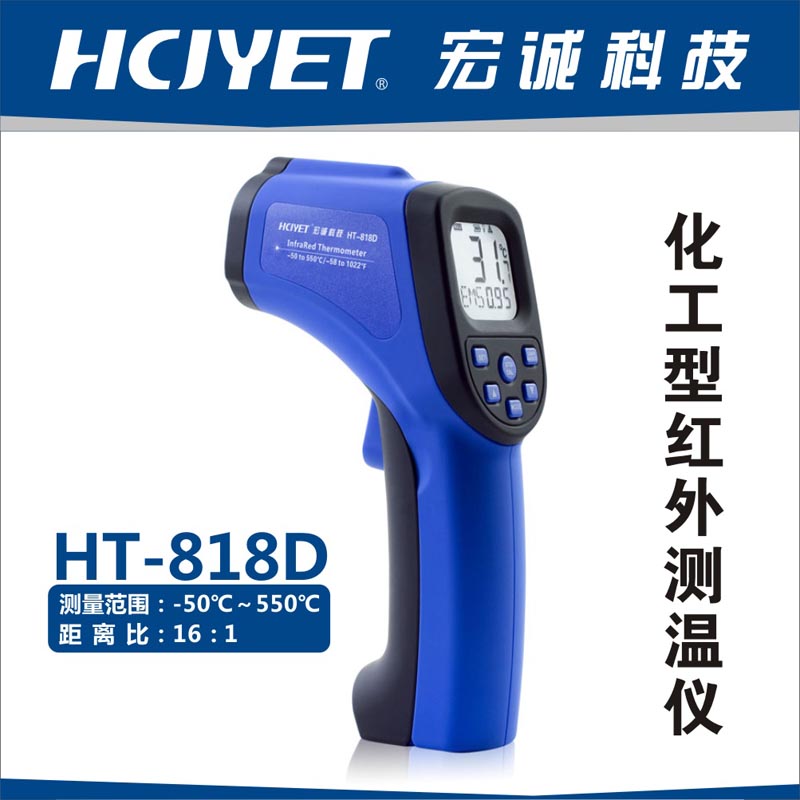 便攜式測溫儀HT-818D具有高溫及高距離比測量的特點,可測距離比16:1,可測量最高溫度550度,帶激光點指示點,此便攜式測溫儀可對目標物體進行瞄準,精確地進行溫度測量。