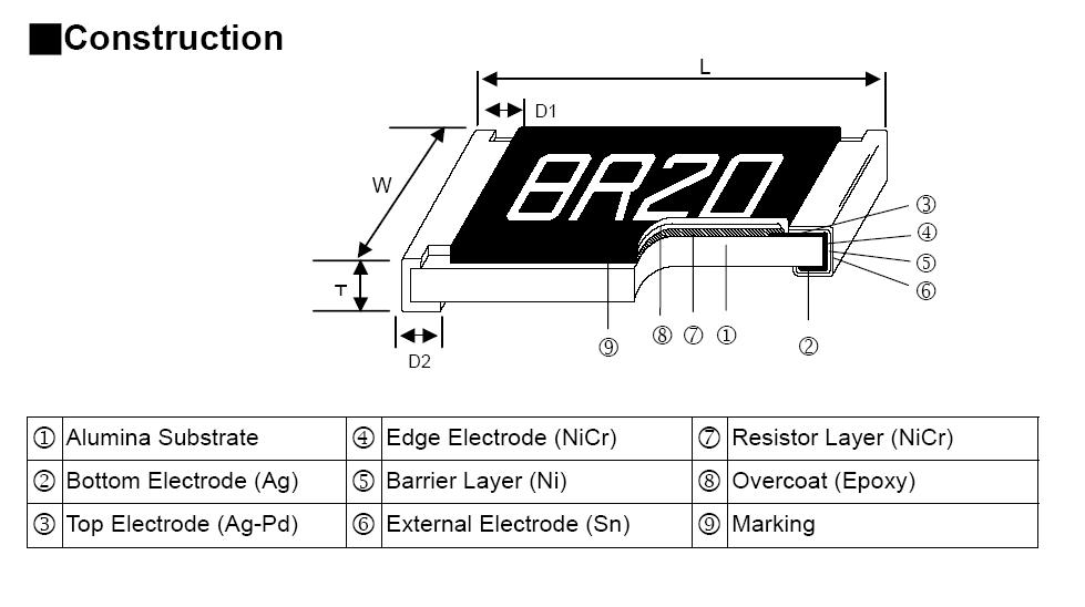 尺寸封裝: (0201;0402;0603; 0805;1206;1210;2010;2512可選)