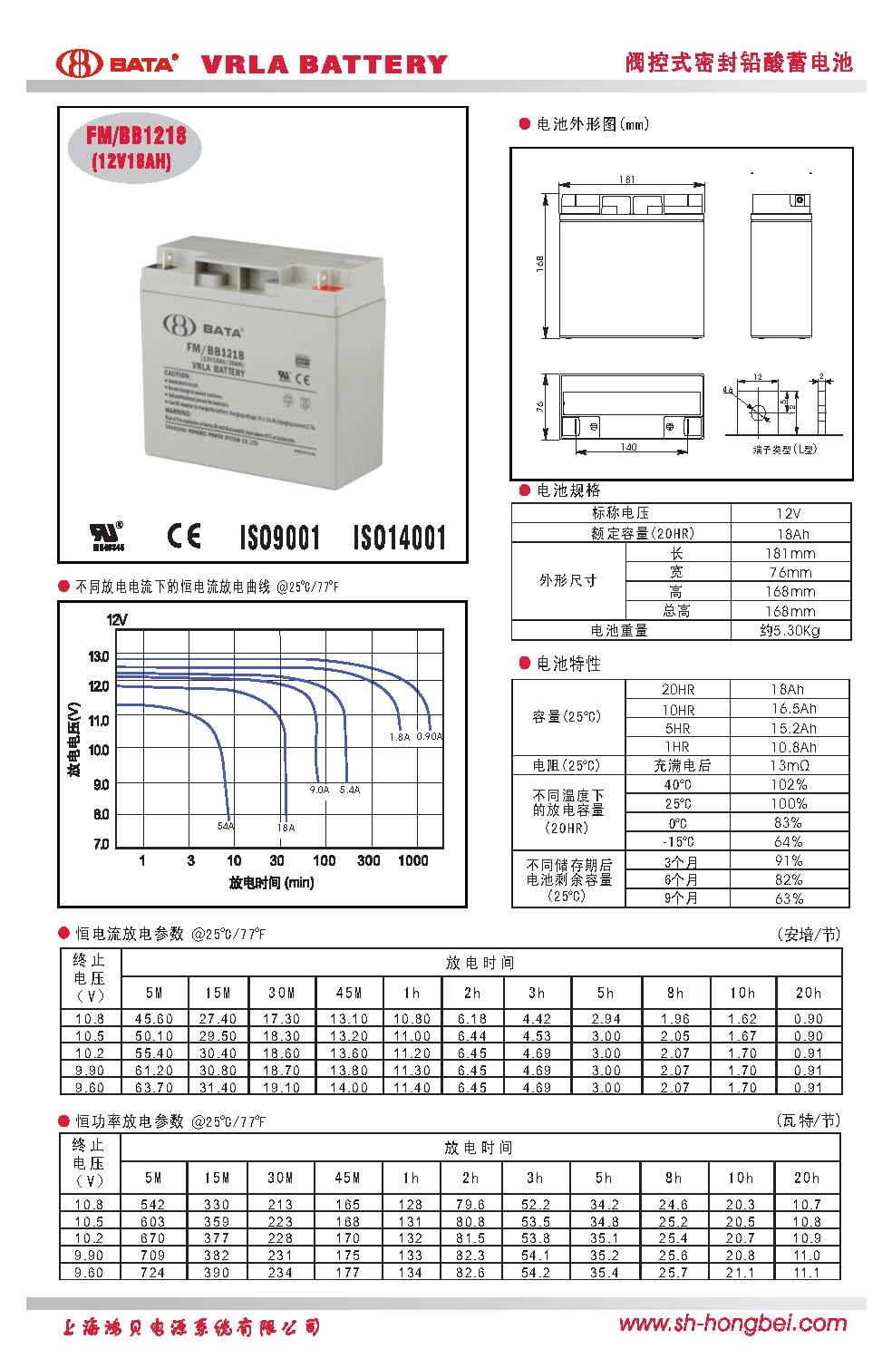 上海鴻貝12V18AH蓄電池