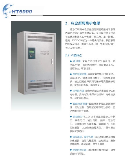 應急照明集中電源是應急照明疏散知識系統內消防應急燈具的供電設備。采用現代電子技術與現代控制技術設計制造,集充電、集中控制、那邊、DC/DC轉換為一體的供電設備。根據系統的規模及特點,電源分兩種,即:交流220V輸出與DC24V輸出。2.1 產品特點