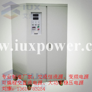 ALC3000系列交流中頻電源是專門為航空及軍用電子電氣設備設計制造的電源,可用于飛機及機載設備、雷達、導航等軍用電子設備,以及其他需要400Hz中頻電源的場合。 400Hz中頻電源以16位微型控制器為核心,以電力電子器件為功率輸出單元,采用了數字分頻、鎖相、波形瞬時值反饋、SPWM脈寬調制、IGBT(IPM)輸出等新技術及模塊化機構,具有負載適應性強,效率高、穩定度佳、輸出波形品質好、操作簡單、體積小、重量輕、智能控制、異常保護功能、輸出頻率可調、反應速度快、過載能力強、全隔離輸出,長壽命抗損傷等特點。