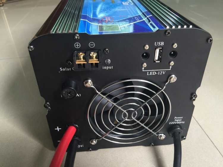12V電池供電,空載電流小于400mA,功率2200W,效率高于93%,帶數字液晶顯示屏,全智能充電,最大電流45A,充滿自停,帶USB輸出接口(可以為手機充電),太陽能充電輸入接口(有防反接,過充電保護)。