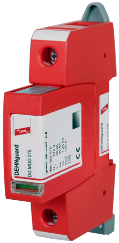 DG S 385,DG S 385 FM DEHNguard S 385, DEHNguard S 385 FM 適用范圍. 低壓電氣設備電涌保護,用于防雷分區OB-1及后續分區;替代老型號產品DEHNguard T 385(900 641)和DEHNguard T 385 FM(900 691) -通用電涌保護器,由底座和可插拔模塊組成 -大通流的氧化鋅壓敏電阻,放電能力高 -“動態熱脫扣”SPD監測裝置,穩定可靠 -與Red/Line產品系列能量協調 -視窗中可顯示操作狀態及故障指示 -多功能接線端子,連接導線和匯流排 -帶有模塊鎖扣裝置,通過模塊釋放按鈕輕松更換保護模塊 -通過沖擊和振動測試,依據EN 60068-2 技術參數 DG S 385 DG S 385 FM 依據EN 61643-11, SPD 2級 2級依據IEC 61643-1, SPD Ⅱ級 Ⅱ級交流最大持續工作電壓 UC 385V 385V 直流最大持續工作電壓 UC 500V 500V 標稱放電電流 (8/20 μs) In 20KA 20KA 最大放電電流(8/20 μs)Imax 40kA 40kA 電壓保護水平 Up ≤2kV ≤1.75kV 5KA時,電壓保護水平Up ≤1.7kV ≤1.35kV 響應時間 tA ≤25ns 最大后備熔絲 125A gL/gG 最大后備溶絲時短路耐受能力 25KArms 暫態過電壓(TOV)UT — 工作溫度范圍TU -40℃ … +80℃ 工作狀態/故障指示 綠 / 紅安裝導線截面稅(最小) 1.5mm2單股線/軟線安裝導線截面稅(最大) 35mm2多股線/25mm2軟線安裝方式 35mmDIN軌, 依據EN 60715 外殼材料 紅色熱塑性材料, UL 94-0 防護等級 IP 20 尺寸 1 mods, DIN 43880 認證 KEMA,VDE,UL,VdS 遙信觸點類型 — 浮動切換觸點交流切換能力 — 250V/0.5A 直流切換能力 — 250V/0.1A; 125V/0.2A; 75V/0.5A 遙信終端的橫截面積 — 最大1.5mm2單股線/軟線