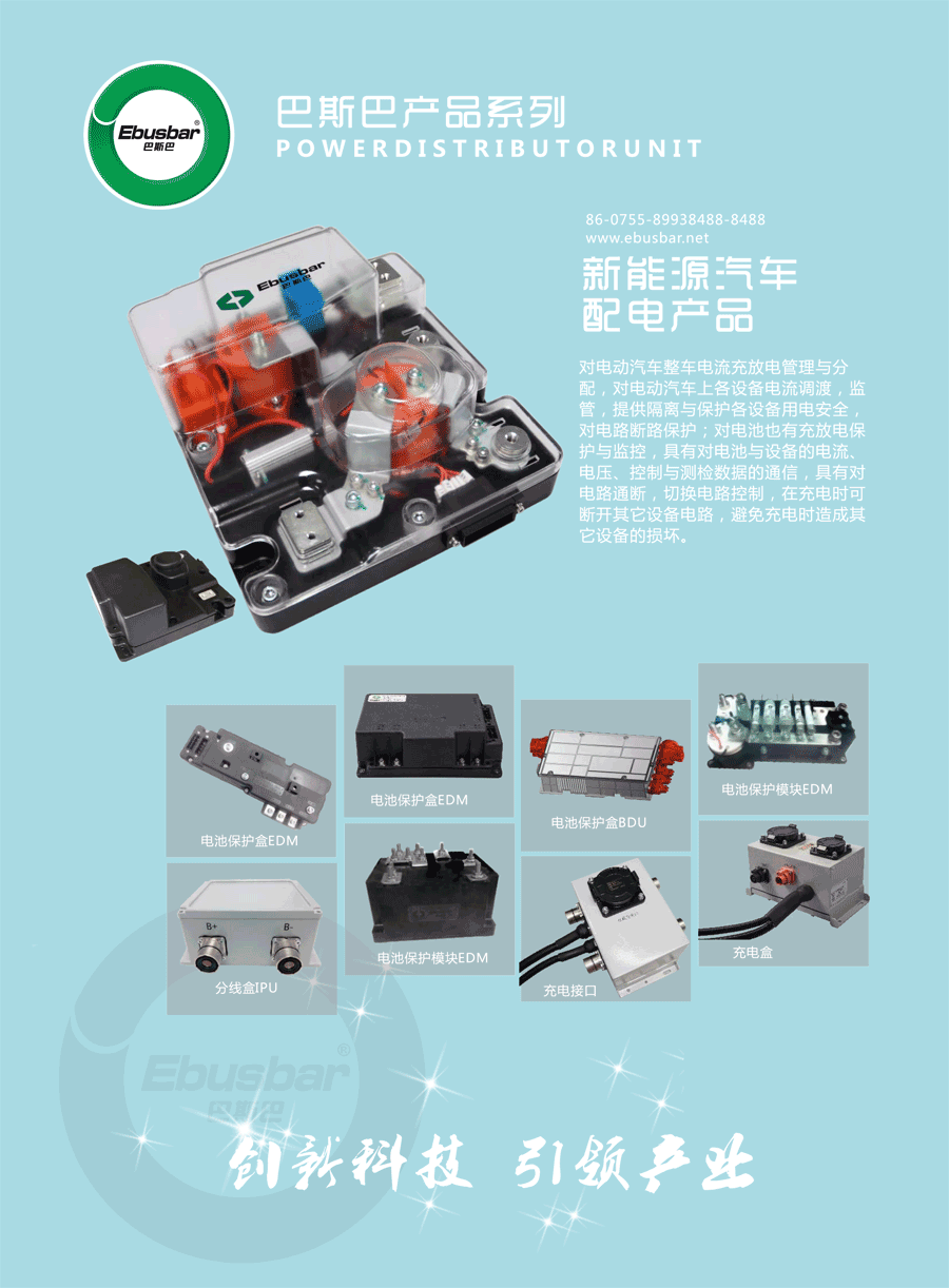 BDU為電動汽車PDU中一個模塊,主要為混合動力純電動汽車設計, 為電動汽車電池箱內保護電池模塊,一種電動汽車鋰電池安全解決方案,是電動汽車高壓電路系統重要保護模塊,電動汽車的整車控制系統的重要組成部分, 其作用協調驅動電機控制系統,電池管理系統, 充電管理系統,D C / D C ,電