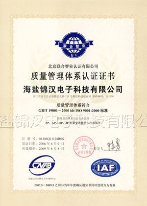 ISO9000質(zhì)量管理體系認(rèn)證證書