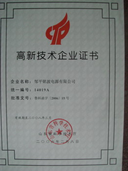 高新技術(shù)企業(yè)證書