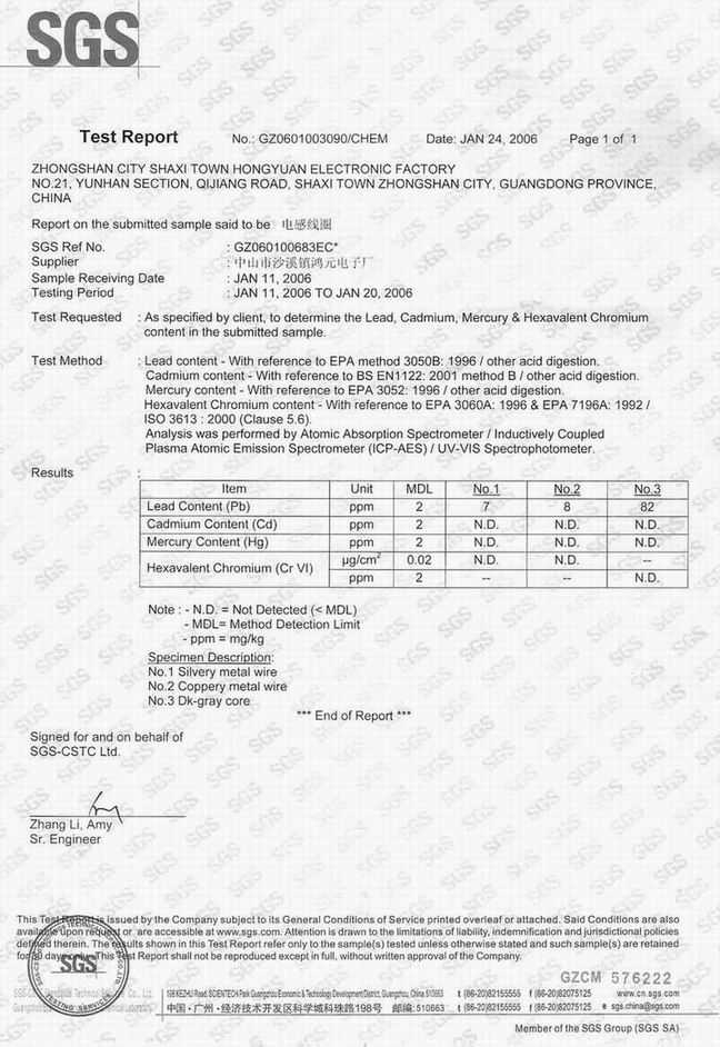 SGS環保證書