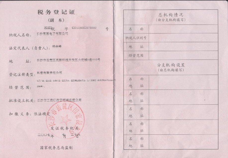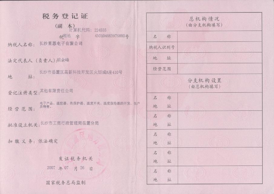 國稅稅務(wù)登記證