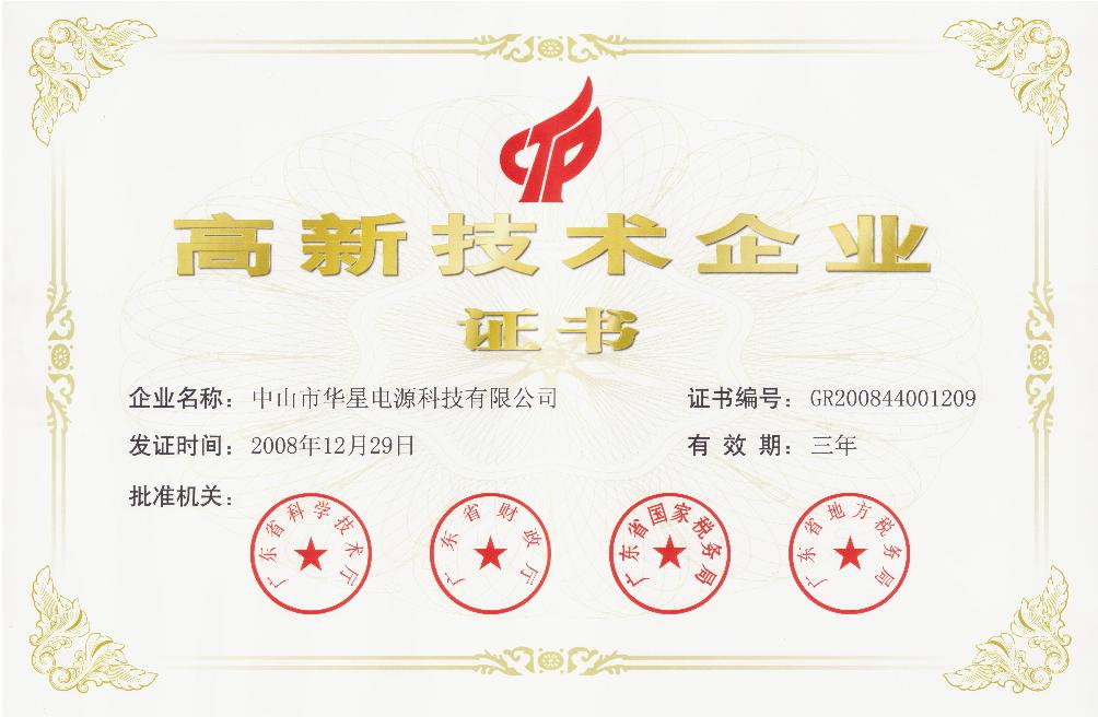 高新技術企業(yè)證書