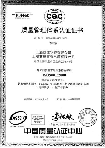ISO9001質量體系認證證書