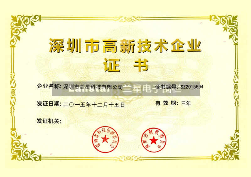 深圳市高新技術企企業證書