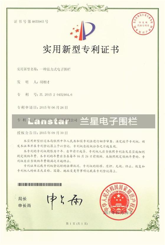 張力電子圍欄專利證書