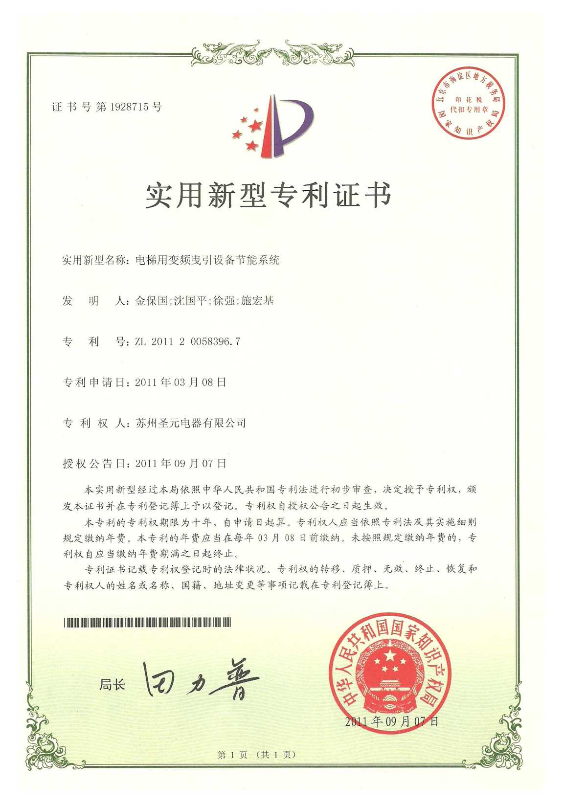 電梯用變頻曳引設備節能系統實用新型專利