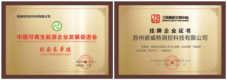 中國可再生能源企業發展促進會副會長單位&江蘇股權交易中心掛牌企業證書