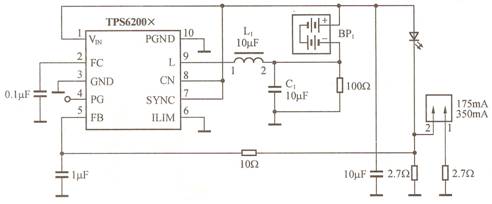 1、  提升電源調節器驅動白光LED的電路