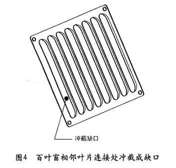 4)為實(shí)現(xiàn)氣流的通暢,減小風(fēng)阻,增大出風(fēng)口面積,百葉窗的相鄰葉片連接處需要沖截成缺口,如圖4所示。