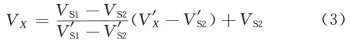 為了消除信道給測量帶來的誤差,在電路和程序中增加了自校準部分。其主要原理是通過比對基準電壓和待測電壓在相同信道中的測量值,進一步消除系統信道帶來的誤差。基準電壓通過穩壓器件和一系列分壓電阻得到一組不同量級且高精度的電壓基準源,設置為1 mV,10 mV,50 mV,100 mV,500 mV,1 V等。設某通道的輸入信號為VX,經過測量得到的結果為V'X;選擇合適的量程范圍,選擇距離此范圍最接近的基準電壓VS1和VS2,經過同樣的信道測量的結果為V'S1和V'S2,那么根據相似性原理可以得到: