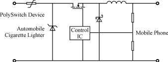 便攜式電子設備,例如蜂窩電話、PDA和手提電腦的電源都有特殊的過流保護要求。這些設備一般是通過AC/DC電源適配器供(充)電,將市電或未經穩壓的直流電轉變為合適的低壓直流電。由于越來越多的人開始在零配件市場上購買電源適配器以及所謂的通用充電器,將不兼容或有故障的電源適配器應用于便攜式設備的可能性也就大大增加。由于電源適配器的電壓、極性以及電流都可能與該設備的電路規范不相吻合,從而將會導致設備損壞甚至帶來安全隱患。