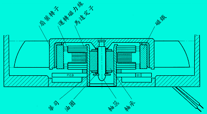 傳統(tǒng)的直流無碳刷風(fēng)扇馬達(dá)設(shè)計時,是扇葉轉(zhuǎn)子(簡稱轉(zhuǎn)子)及其軸芯穿越含油軸承,簡稱SLEEVE軸承,樞接固定在馬達(dá)定子之中心位置,使轉(zhuǎn)子與定子之間保持一個適當(dāng)之間隙,當(dāng)然軸芯與軸承間亦務(wù)必有間隙之存在,才不會將軸芯死鎖而無法運轉(zhuǎn);而馬達(dá)之定子結(jié)構(gòu)部分(簡稱定子),在電源輸入之后,就會在轉(zhuǎn)子與定子間產(chǎn)生感應(yīng)磁力線,及驅(qū)動回路之控制使風(fēng)扇馬達(dá)運轉(zhuǎn)。故傳統(tǒng)之風(fēng)扇馬達(dá)架構(gòu),只有一個扇葉轉(zhuǎn)子及一個馬達(dá)定子和一個驅(qū)動回路,而借著軸芯與軸承之樞接,隨著磁場感應(yīng)而運轉(zhuǎn),請看下圖: