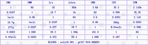 風(fēng)量單位、風(fēng)量換算表(圖)