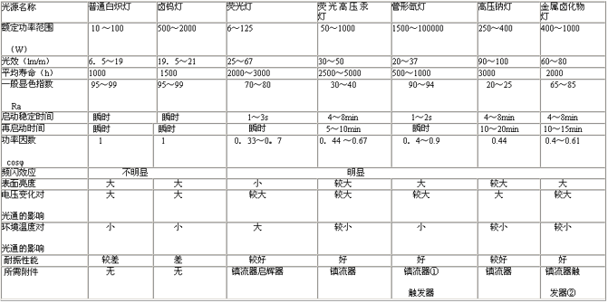 注:1.小功率管形氙燈需用鎮流器,大功率可不用鎮流器;