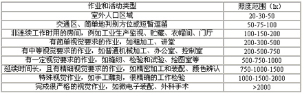 表3-3-16是國際照明委員會對各種作業和活動推薦的照度范圍(又稱CIE照度標準)。
