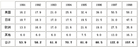 表3-2 1991-1998年世界光伏組件的銷售量(MWp)