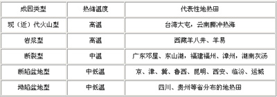 地熱資源按其在地下的賦存狀態,可以分為水熱型、干熱巖型和地壓型地熱資源;其中水熱型地熱資源又可進一步劃分為蒸汽型和熱水型地熱資源。