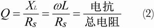 我們將電感線圈電抗(XL)與總電阻(Rs)之比稱為品質因素Q,參見公式(2)。品質因素被定義為電感器的品質參數。損耗越高,電感器作為儲能元件的品質就越低。