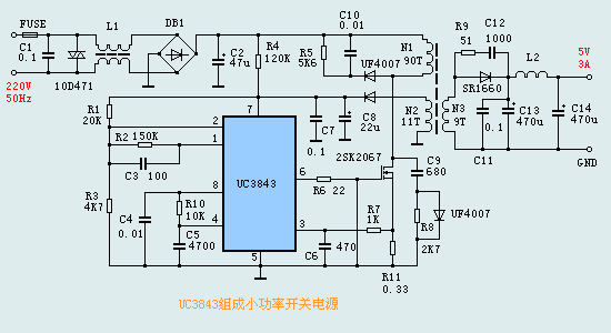 使用UC3843 組成小功率開(kāi)關(guān)電源(圖)