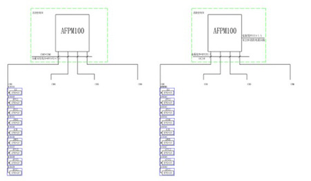 南禪寺地鐵上蓋物業(yè)項目消防設(shè)備電源監(jiān)控系統(tǒng)采用消防設(shè)備電源狀態(tài)監(jiān)控器+電壓傳感器的二層結(jié)構(gòu)組網(wǎng)模式。根據(jù)項目實際要求,為該項目配置消防設(shè)備電源監(jiān)控系統(tǒng)的電壓傳感器型號為:AFPM3-2AV,消防設(shè)備電源狀態(tài)監(jiān)控器型號為:AFPM100/B;AFPM100/B設(shè)置在消防控制室內(nèi),引出1根RS485總線及DC24V電源線與現(xiàn)場配電箱內(nèi)的傳感器相連。系統(tǒng)拓?fù)浣Y(jié)構(gòu)如下圖: