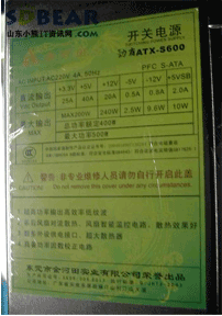 勁霸ATX S-600: 額定功率400W 最大功率500W 直流輸出:+3.3V/25A +5V/40A +12V/20A 接頭:2個S-ATA接口、24PIN 接口、+12V 8PIN接口(服務器用8PIN、普通用4PIN)、另附送24PIN和20PIN轉接線1PCS、13個大4PIN 1個小4PIN 兩個S-ATA接口 |