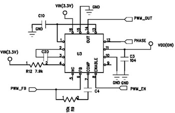 PTH03030H模塊的降壓PWM控制模塊(U3)的局部電路如圖3所示。