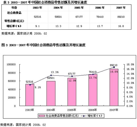 3.消費(fèi):隨著經(jīng)濟(jì)下滑,消費(fèi)者對(duì)經(jīng)濟(jì)前景逐步變得悲觀,消費(fèi)增速將出現(xiàn)拐點(diǎn)。限額以上零售增速已經(jīng)下滑,預(yù)計(jì)2009年零售實(shí)際增速降至13%,名義消費(fèi)增速在14%,甚至更低。