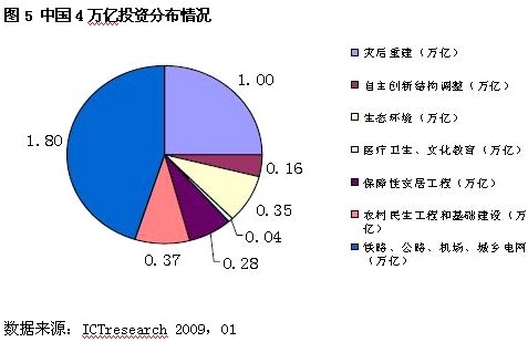 4萬(wàn)億方案具體構(gòu)成是,近一半投資將用于鐵路、公路、機(jī)場(chǎng)和城鄉(xiāng)電網(wǎng)建設(shè),總額1.8萬(wàn)億元;用于地震重災(zāi)區(qū)的恢復(fù)重建投資1萬(wàn)億元;用于農(nóng)村民生工程和農(nóng)村基礎(chǔ)設(shè)施3700億元;生態(tài)環(huán)境3500億元,保障性安居工程2800億元,自主創(chuàng)新結(jié)構(gòu)調(diào)整1600億元,醫(yī)療衛(wèi)生和文化教育事業(yè)400億元。從政府投資受益的行業(yè)主要包括水泥、電網(wǎng)設(shè)備、機(jī)械、鐵路、環(huán)保。此外還有受3G牌照發(fā)放等政策催化下受益的通訊設(shè)備行業(yè)。