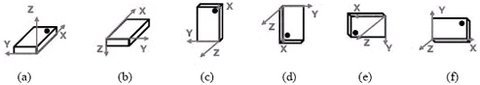 在3維空間中,根據3個軸上正負方向的不同可以將物體的位置分為6種狀態,分別是上下、左右、前后。如圖1所示。這種空間位置信息對于手持式設備是很有用的。它不僅能讓使用者了解當前設備的空間狀態,還能在此基礎上開發出一些新的應用,如“翻轉靜音”等等。