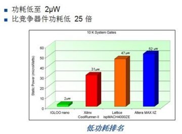 Actel技術支持培訓經理戴夢麟則介紹了低功耗Flash FPGA在便攜式醫療設備上的應用,他指出Flash工藝具備低功耗優勢、上電即行、單芯片帶來的總成本優勢、天然的安全優勢和可靠性優勢等特點,所以非常適合便攜式醫療電子產品應用。他特別將IGLOO Nano 系列 FPGA的功耗和其他廠商的FPGA產品進行了比較。