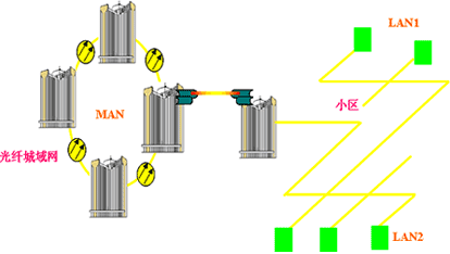目前長途網(wǎng)絡(luò)建設(shè)已比較完善。但在城域網(wǎng),需要有大的突破,特別是在大城市,具有很大的寬帶接入潛力。公司和家庭都需要高速Internet接入。但城域網(wǎng)比長途干線網(wǎng)面臨更加復(fù)雜的問題。