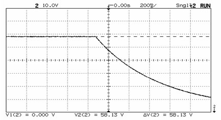 電網的突然變化時有發生,作為通訊電源,不僅要適應電網的緩慢波動,還要適應電網的突然變化,這種適應不僅是電源不壞,更重要的是保證負載不受任何有害的沖擊。泰坦電源模塊在電網從 220V到330V的突變的情況下,可以安然無恙,會在幾個毫秒內關機保護,并保證其輸出電壓不會有任何過沖。到目前為止,尚未見到其它廠家能進行這項實驗。下圖是電網突變時電源模塊的空載輸出波形,可以看出,在輸入電壓這樣大幅度突變的情況下,輸出沒有任何過沖。