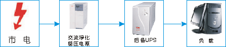 此類用戶的負載一般容量都比較小,多數為電腦、路由器之類的局域網絡設備。一般停電時間比較短,市電的傳導干擾對系統的危害比較大。根據成本可以采取以下方案解決: