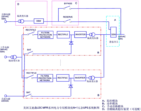 方案2:LDC MPR系列變電站專用模塊化N+1并聯(lián)冗余UPS/逆變器