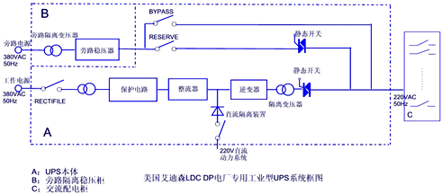 包括: 輸入隔離變壓器、輸出隔離變壓器、整流器、逆變器、靜態旁路開關、手動維修開關、直流隔離二極管、控制單元、顯示單元等